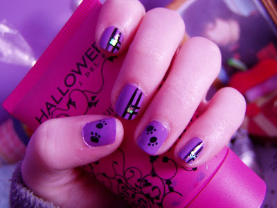 Luminous blog). So I grabbed my IVSTY nail polish (no. 302) as base colour and then I drew little flowers on my ring fingers and thumbs with my Wynie black nail polish (no. 07) connected with little dots with the same black colour and with a dark blue rhinestone in the middle of each flower. I think it came out really pretty for a simple everyday mani :P