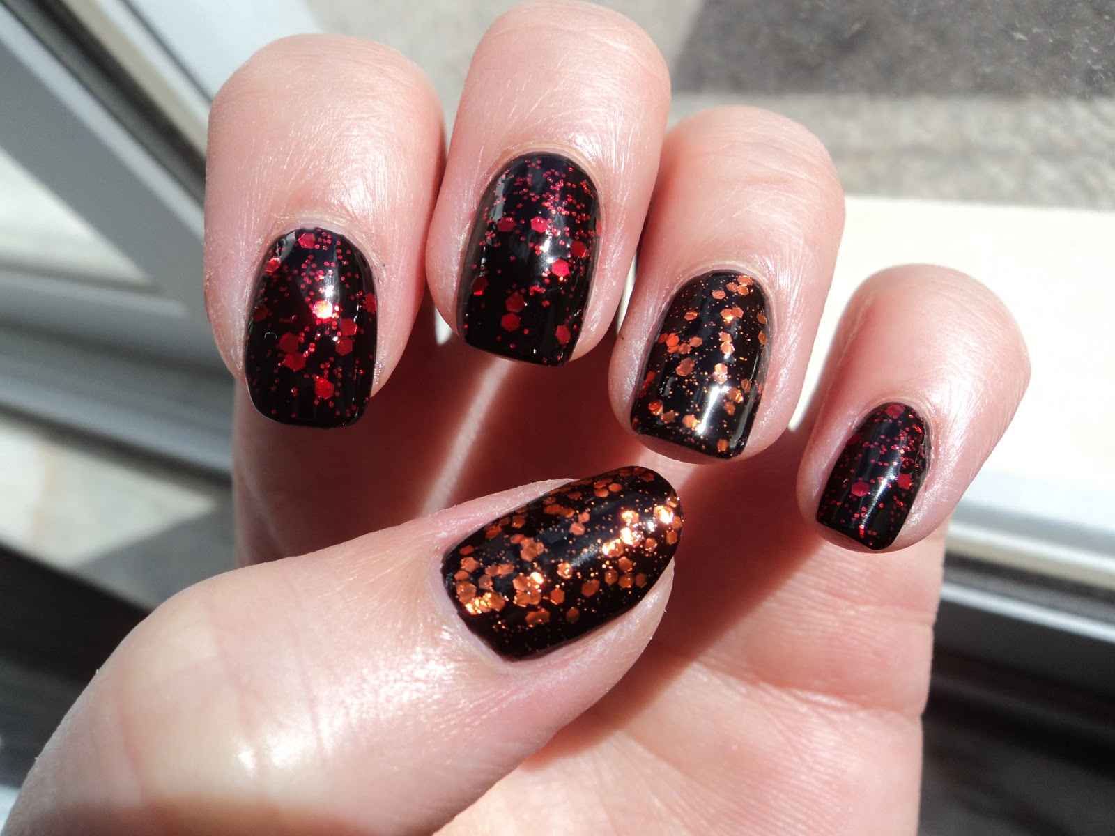 Chunky Nail Pumpkin Polish Blue and Pink Glitter